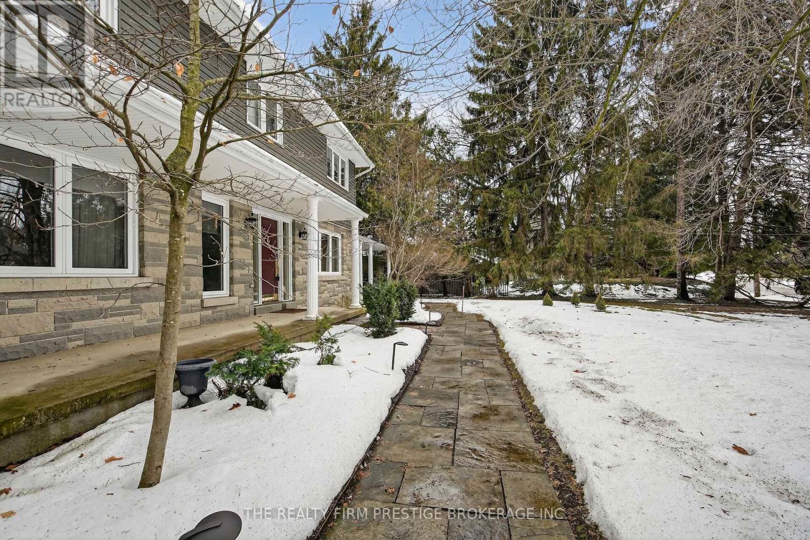 Set on an extraordinary 0.85-acre lot in one of London's most prestigious neighbourhoods, this impressive property offers over 4,200 square feet of living space with 5 bedrooms and 6 bathrooms. Thoughtfully maintained and upgraded over the years by the current owners, the home blends timeless elegance with modern comfort. The main floor offers an ideal layout for both everyday living and entertaining, featuring a bright and expansive eat-in kitchen with floor-to-ceiling windows overlooking the professionally landscaped backyard and stunning 20' x 40' in-ground pool. A separate bar/pantry area just off the kitchen adds exceptional convenience and is perfect for entertaining and hosting. Elegant formal living and dining rooms provide refined spaces for holidays and special gatherings, while still maintaining a warm, welcoming feel throughout. A total of four fireplaces add character and ambiance across the home. Designed with functionality in mind, the main floor also includes convenient laundry and a dedicated bathroom with direct outdoor access, perfect for pool days. Upstairs, two separate staircases lead to spacious bedrooms, including an oversized primary suite complete with a large walk-in closet, an ensuite with in-floor heating, and a cozy fireplace in the primary bedroom itself, creating a true retreat. A second generous primary suite also offers its own ensuite with heated floors and a walk-in closet. The lower level provides a finished recreation room and 2-piece bathroom, perfect for a kids' play area or games room. A rare four-car garage, including a detached double garage, provides exceptional storage and flexibility. The backyard is a private retreat with ample space. Large enough to add tennis courts, as it once had, offering endless possibilities. With a recently updated boiler furnace (2023) providing efficient heating and an unbeatable setting within the city, this is a truly remarkable property that offers space, privacy, and prestige all in one. (id:60351)