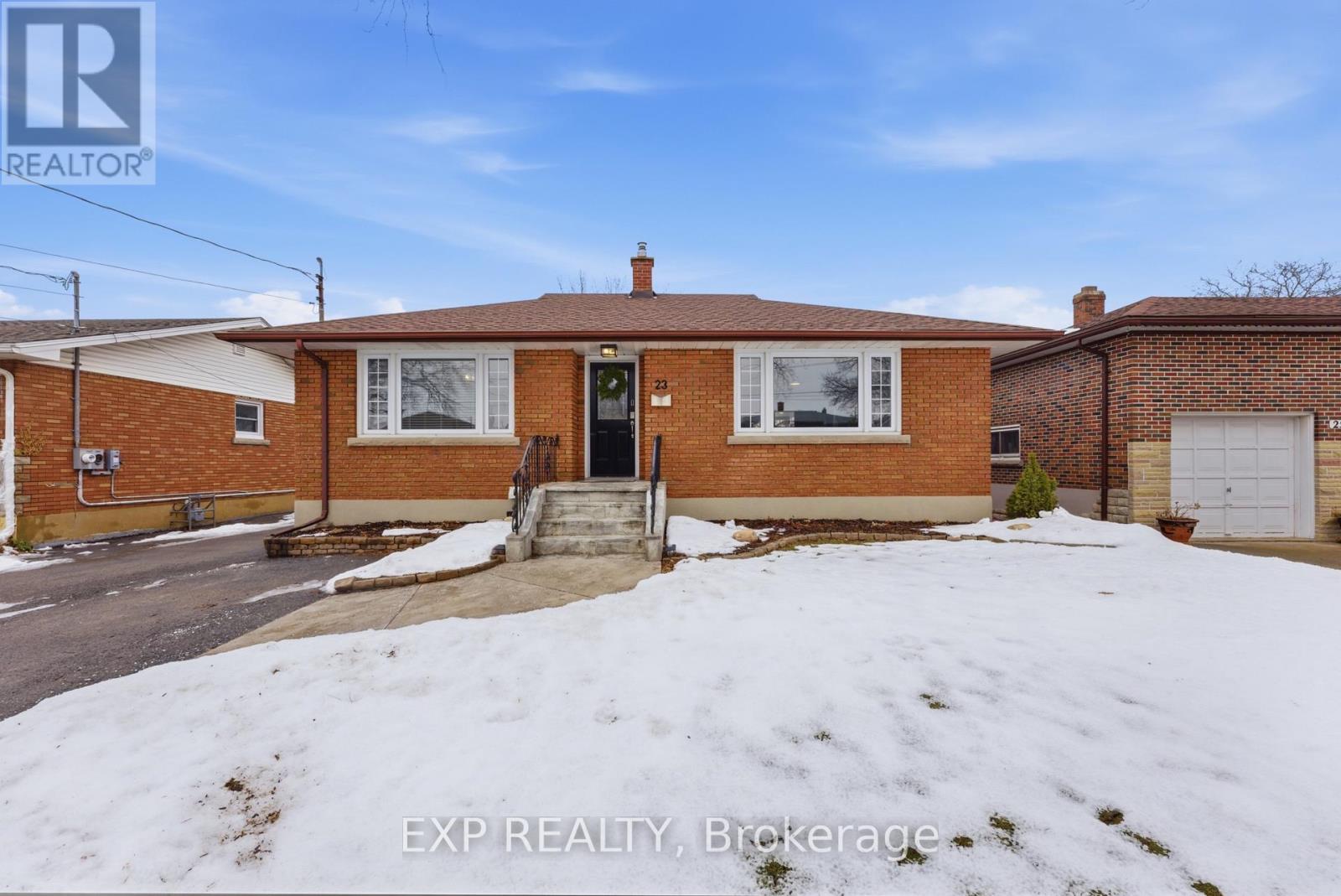 Welcome to 23 Chalmers Street. This beautifully maintained all-brick bungalow in a quiet St. Catharines neighbourhood, offering thoughtful updates, flexible living space, and an exceptional backyard designed for summer living. The main floor is bright and move-in ready, featuring fresh paint (2024), new carpeting (2025), updated lever blinds, and a refreshed kitchen with a modern backsplash (2024) and stainless steel fridge and stove (2025). Three bedrooms are located on the main level, with the third currently used as a spacious walk-in closet and laundry area, easily converted back to a bedroom if needed. The main bathroom offers a relaxing jacuzzi tub with rain shower head for a spa-like feel. The fully finished lower level provides excellent in-law or multi-generational potential with two additional bedrooms, an updated three-piece bathroom with glass shower, and a built-in breakfast bar complete with sink and bar fridge; ideal for guests or extended family. Major updates include furnace and A/C (2024), roof (2024/2025), attic insulation (2024), and gutter guards on the house and garage (2025), offering peace of mind for years to come. Step outside to a private, fully fenced backyard that truly sets this home apart. A maintenance-free composite deck wraps around the above-ground pool, creating the perfect space for entertaining. Built-in steps with accent lighting lead to the pool area, while mature trees provide shade and privacy. The covered patio with skylights extends your living space outdoors and offers multiple seating areas for relaxing or hosting. A detached garage and large shed, both with hydro, provide excellent storage and workspace options. With its versatile layout, extensive updates, and standout outdoor space, 23 Chalmers Street offers comfort, functionality, and a lifestyle that's hard to find. (id:60351)