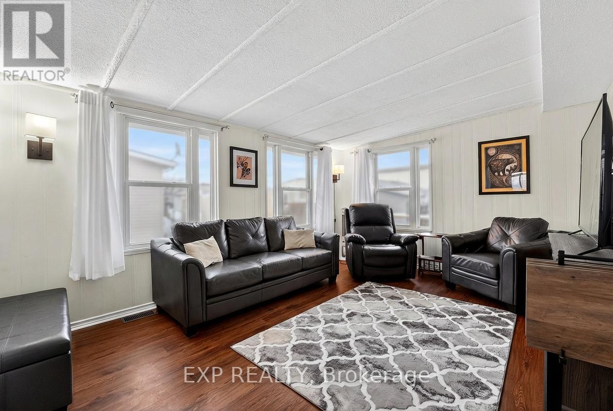 Comfort, Community & Carefree Living... Welcome to Unit 308 at 3033 Townline Road (Pinewood Dr), located in the highly desirable Black Creek Adult Lifestyle Community in Stevensville. This well-maintained 2-bedroom, 2-bathroom home offers a bright, easy-flow layout designed for comfortable everyday living. The primary bedroom provides privacy with its own ensuite, while the second bedroom is ideal for guests, hobbies or a quiet home office. Generous living and dining spaces create a welcoming setting for both relaxation and entertaining. Step outside and enjoy not one, but two decks, perfect for morning coffee, afternoon reading or entertaining friends on warm summer evenings. Two sheds plus a convenient storage bin provide excellent space for tools, gardening supplies, and seasonal items, while the double-wide concrete driveway offers effortless parking and accessibility. Life at Black Creek is about more than just the home, it's about lifestyle. Residents enjoy access to a clubhouse, indoor pool, sauna, tennis and pickleball courts, fitness classes, social events and a full calendar of activities in a friendly, welcoming community. Monthly fees of $1,071.71 ($850 land lease & $221.71 estimated taxes) provide simplified, predictable budgeting and access to the amenities that make this community so desirable. Surrounded by nature yet close to everyday amenities, this is downsizing done right, where the low-maintenance lifestyle allows you to spend more time enjoying what matters most. If you're ready to downsize and upgrade your lifestyle, Unit 308 offers the comfort, convenience and vibrant community you've been waiting for. (id:60351)