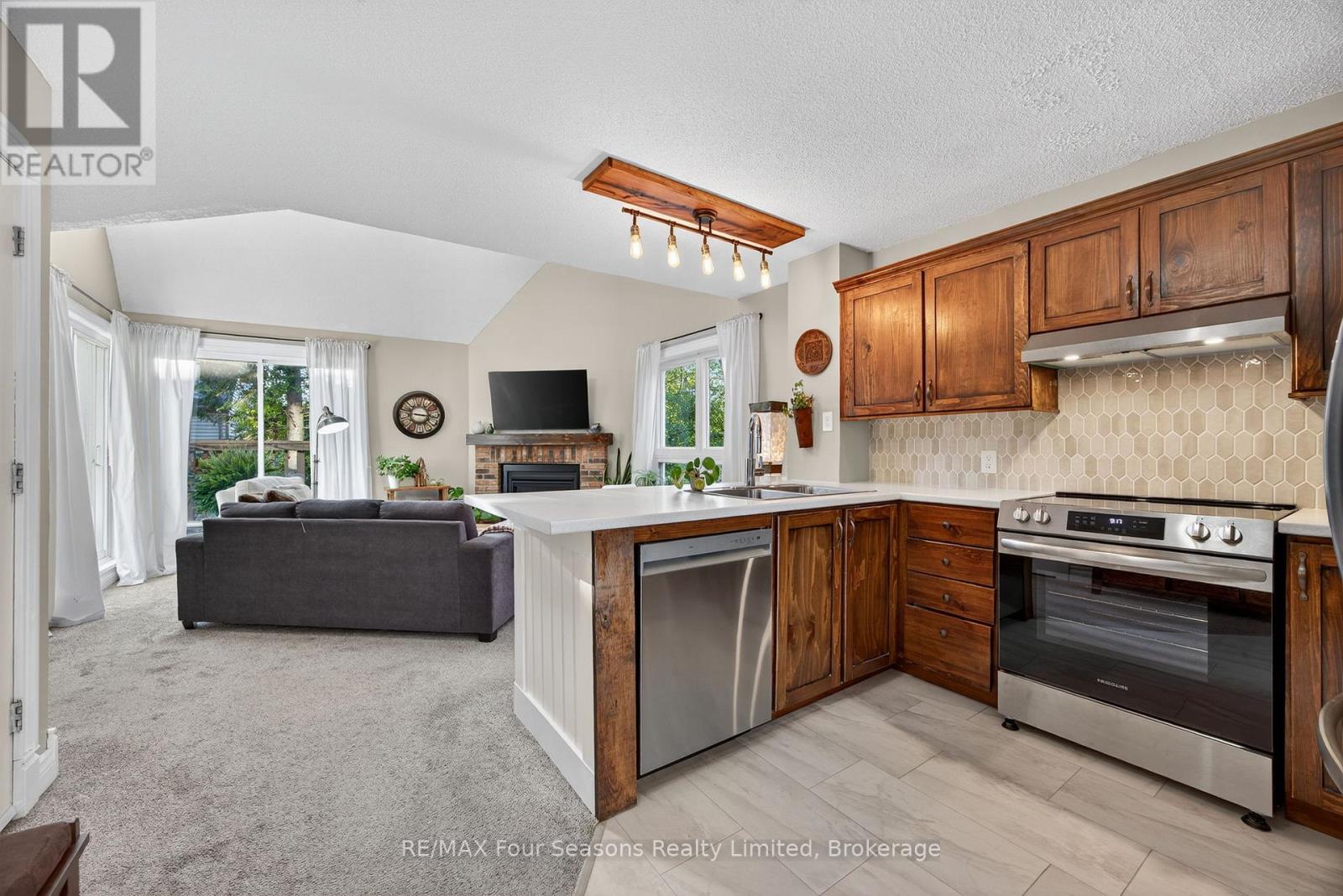 Welcome to Unit 164 at 51 Trott Boulevard - a stylish and thoughtfully designed condo in the heart of Collingwood, offering comfort, convenience and character. This bright residence features 2 spacious bedrooms and 2 full baths, providing an excellent layout for either full-time living or a flexible getaway. The open-concept living area invites you in with a seamless flow from kitchen to dining to living room, ideal for entertaining or relaxed lounging. A cozy gas fireplace anchors the space, while large windows capture natural light and create a warm, inviting ambiance. Step out onto your private balcony and enjoy fresh air. In your kitchen you'll appreciate modern finishes and practical touches: sleek cabinetry, stainless steel appliances, and ample counter space. Both bedrooms provide restful retreats, with the primary suite boasting its own ensuite bath for added privacy and convenience. The second bedroom is generously sized and is served by a full bath - perfect for guests, overnight visitors or a home-office setup. Additional highlights include in-unit laundry, an assigned parking space, and proximity to a variety of amenities - from downtown Collingwood's restaurants and shops to hiking trails, beaches and winter-sport destinations in the region. Whether you're seeking a lock-and-leave second home or a full-time residence with lifestyle appeal, this unit offers an elegant, low-maintenance option in a vibrant community. Don't miss your chance to call Unit 164 at 51 Trott Boulevard your next home-base in Collingwood. (id:60351)