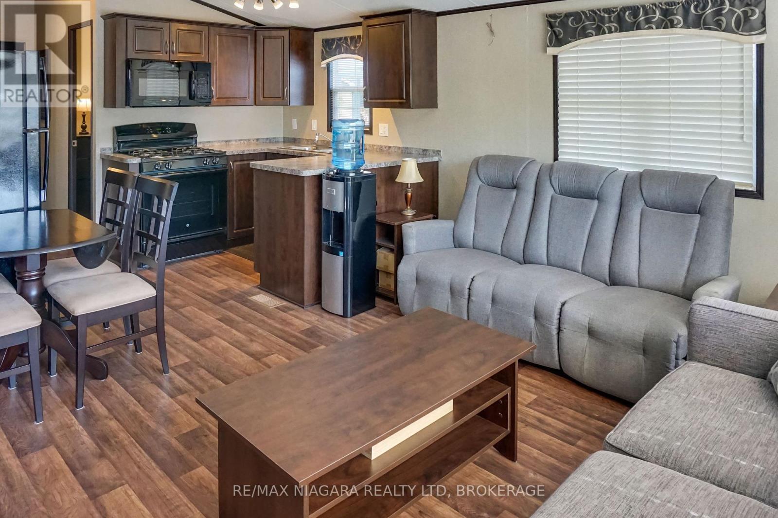 Welcome to your perfect seasonal escape in Niagara-on-the-Lake, surrounded by lush vineyards and peaceful scenery. Situated on a spacious lot with plenty of green space, this fully furnished 2-bedroom, 1-bathroom retreat offers comfort and convenience. With a full kitchen and room to sleep up to 6 people comfortably, it's ideal for family getaways or hosting friends. Step outside and enjoy two fantastic features: a large covered deck for shaded relaxation and a bright sunroom where you can unwind and take in the views rain or shine. Whether you're sipping your morning coffee or enjoying a summer evening with a glass of wine, this property has all the makings of a relaxing seasonal home. Turnkey and move-in ready, its the perfect spot to enjoy Niagara living, spring through fall. Enjoy the ease of resort-style living in one of Niagaras most desirable vacation destinations. This seasonal property at Vine Ridge Resort offers a peaceful getaway from May through October, with no property taxes and full access to everything the resort has to offer. As an owner, youll have unlimited use of the resorts impressive amenities, including a massive one acre splash pad, in-ground pool, Kids Klub, sports courts, playgrounds, special events, and even WiFi at the Welcome Centre. Its all designed for you, your family, and your guests to enjoy. The 2026 Annual Resort Management Fee of $9,825 covers water, hydro, sewage, grass cutting, taxes, and general maintenancemaking it easy to focus on relaxation. You're only responsible for propane and insurance. Not able to use the trailer every week? No problem you can rent it out on Airbnb when you're not there (some conditions apply).To learn more about the resort and everything it offers, visit vineridgeresort.com. Dont miss your opportunity to own one of the best-located units in the park. (id:60351)