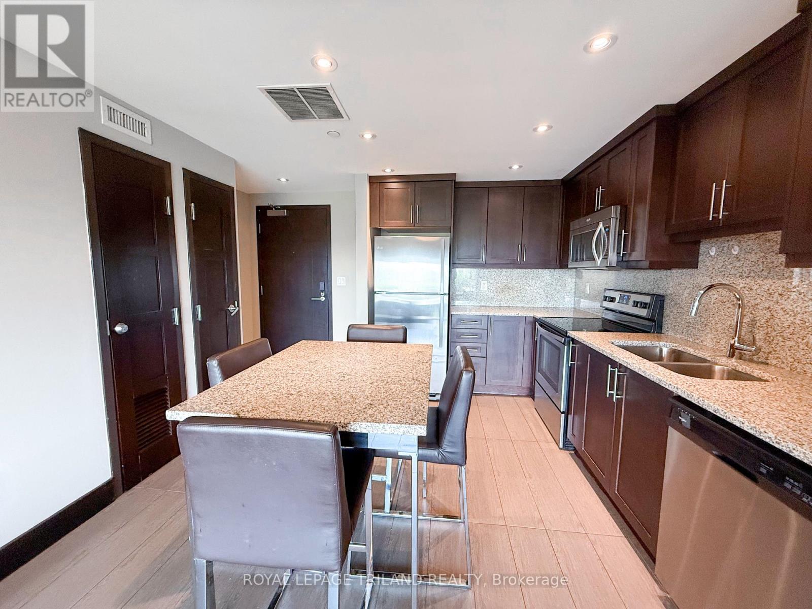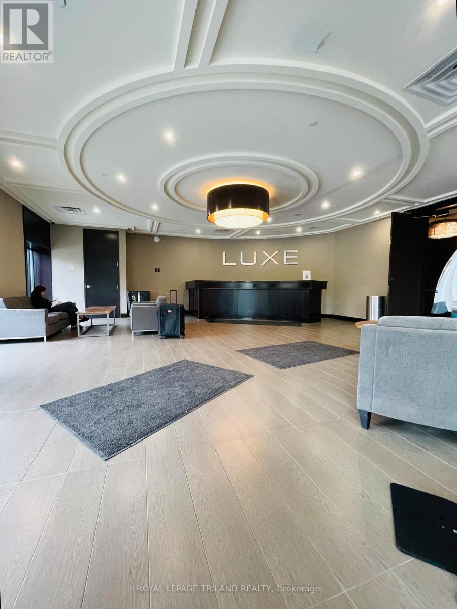 Welcome to one of this premium two bedroom unit! This unit shows very well with A++ tenants and it comes with underground parking. This is the premier building for student accommodation. This is a low-stress investment opportunity. Welcome to The Luxe, London's premier destination for Western students looking for a newer building within walking distance to Western. Onsite Starbucks, billiards lounge, games room, 24 hour fitness centre, yoga studio, 40 person movie theatre, roof top patio, spa lounge, extensive security cameras, a study hall and a full time onsite staff. This unit accommodates 2 people and features a gourmet kitchen with granite, expansive floor to ceiling windows, it comes fully furnished and in suite controlled heating. Heat, water, central air all included in condo fee. Beautiful views of Ross Park, the Thames River and the Thames Valley Bike Trails. Unit is leased for $2850 per month until May 2027. (id:60351)