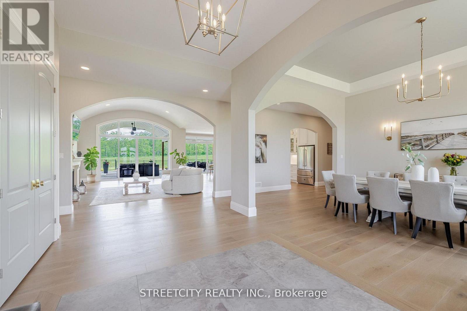 Endless possibilities await in this extraordinary custom-built estate, offering the rare combination of 6.9 acres of countryside privacy within the city, just minutes from Hyde Park Shopping Centre and Western University. This architectural masterpiece blends Old-World charm with modern luxury and includes a private guest house, ideal for extended family, visitors, or rental income. The main residence is thoughtfully designed for multi-generational living, featuring a recreation room with bar/kitchen, two additional bedrooms, a full bath, and laundry facilities. An inviting entrance opens to a stunning open-concept layout with 10-foot ceilings and in-floor heating on both levels, delivering refined comfort throughout. An elongated dining room sets the stage for memorable gatherings, while a cozy gas fireplace with stone mantle adds warmth and character. A striking barrel ceiling extends from the great room to the covered rear porch, seamlessly connecting indoor and outdoor living. The chef-inspired kitchen is anchored by a custom stone-cast range hood and a 48-inch professional gas stove with eight burners and dual ovens. Patio doors from the dinette and a convenient pass-through window from the fully equipped pantry lead to the rear porch dining area, making entertaining effortless. Secondary bedrooms offer custom closets and private ensuites for exceptional comfort and privacy. With over 6,573 sq ft of finished living space, this home is as functional as it is impressive. Outdoors, enjoy a resort-style setting with a covered porch, stone gas fireplace, and views of the 18' x 40' in-ground pool with sun ledge-perfect for relaxing or hosting unforgettable gatherings. A rare offering of luxury, space, and versatility, this estate is designed for elevated family living. (id:60351)