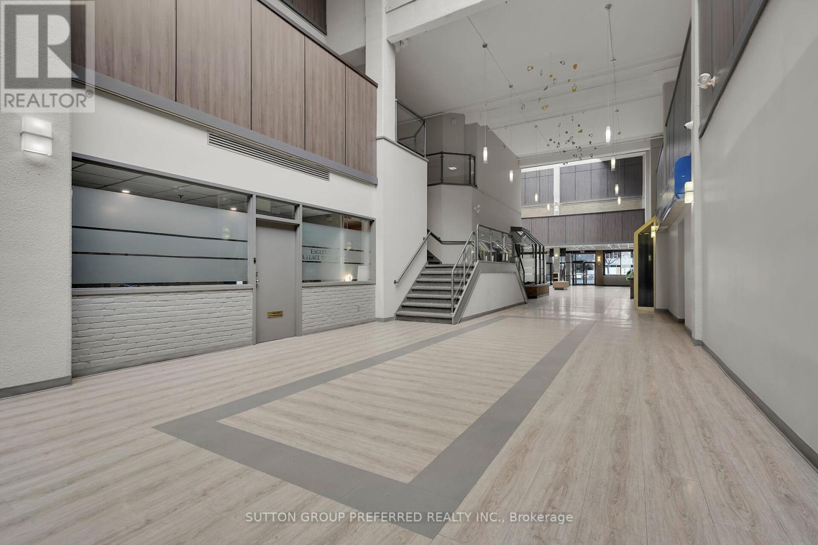 1st Floor Commercial Condos in Downtown London - Units 118 & 119 - 379 Dundas Street, aka London Towers. Units are being sold together at a total of 4,010 sqft of space. With DA2 Zoning they would make great office spaces for Insurance, Realty or Legal OR service trades like RMT, Physio or Medical plus many other business possibilities. Both units have updated vinyl laminate flooring and fresh paint. UNIT 118 at 1,880 sqft has an open reception area with view of the common area foyer. As you move through the space you'll find 9 private offices, a kitchen, storage areas and access to the emergency exit. UNIT 119 at 2,130 sqft has an open Reception Area with view of the atrium entrance. There is a private office, a large conference room, an open workstation area & kitchenette with wet bar, storage rooms, large rear room & access to emergency exit. Each unit has 1 underground parking spot on Level P2 #197 & #198. Other underground spots are available for rent. The owner has the advantage of using the building amenities such as: Pool, Fitness Area, Sauna, Windham Party Room & Outdoor Roof Top Area. The D2 (Downtown) Zoning allows for various types of retail, service and office business uses. There is secure fob entrance, building is wheelchair accessible with an elevator to access the 2nd floor commercial space. There are common area washrooms on the 1st & 2nd floors. Monthly Condo Fees Include: heat, hydro, water, common area maintenance, exterior maintenance, snow removal & the maintenance person is available 24/7. Located minutes to many downtown amenities like Delta Hotels London Armouries, Canada Life Place, Victoria Park & Richmond Row shops. (id:60351)