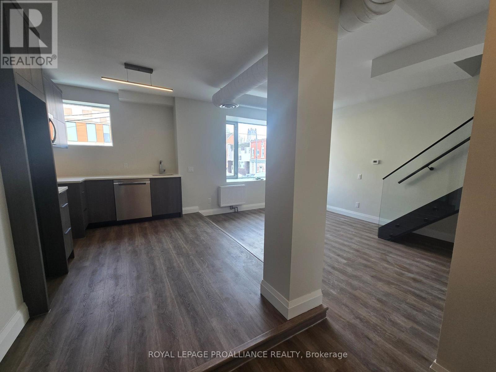 Welcome to The Lofts at 241 Front. This striking former bank building has been thoughtfully transformed into seven brand-new loft-style apartments that blend historic character with modern luxury. Each suite features soaring high ceilings, large windows that flood the space with natural light, and beautiful downtown views. The apartments showcase high-end finishes throughout, two bathrooms, and the convenience of in-suite laundry. With a variety of distinct floor plans ranging from approximately 500 to 1,000 square feet, these lofts offer flexible living options to suit different lifestyles. Set in a prime downtown location, 241 Front Street delivers a unique opportunity to live in the one-of-a-kind building where architectural charm meets contemporary urban living. Unit 202 measures 500 square feet with a combined living room and kitchen plus 2 piece bath on the second level, and a bedroom and 3 piece bath plus laundry on the loft level. (id:60351)