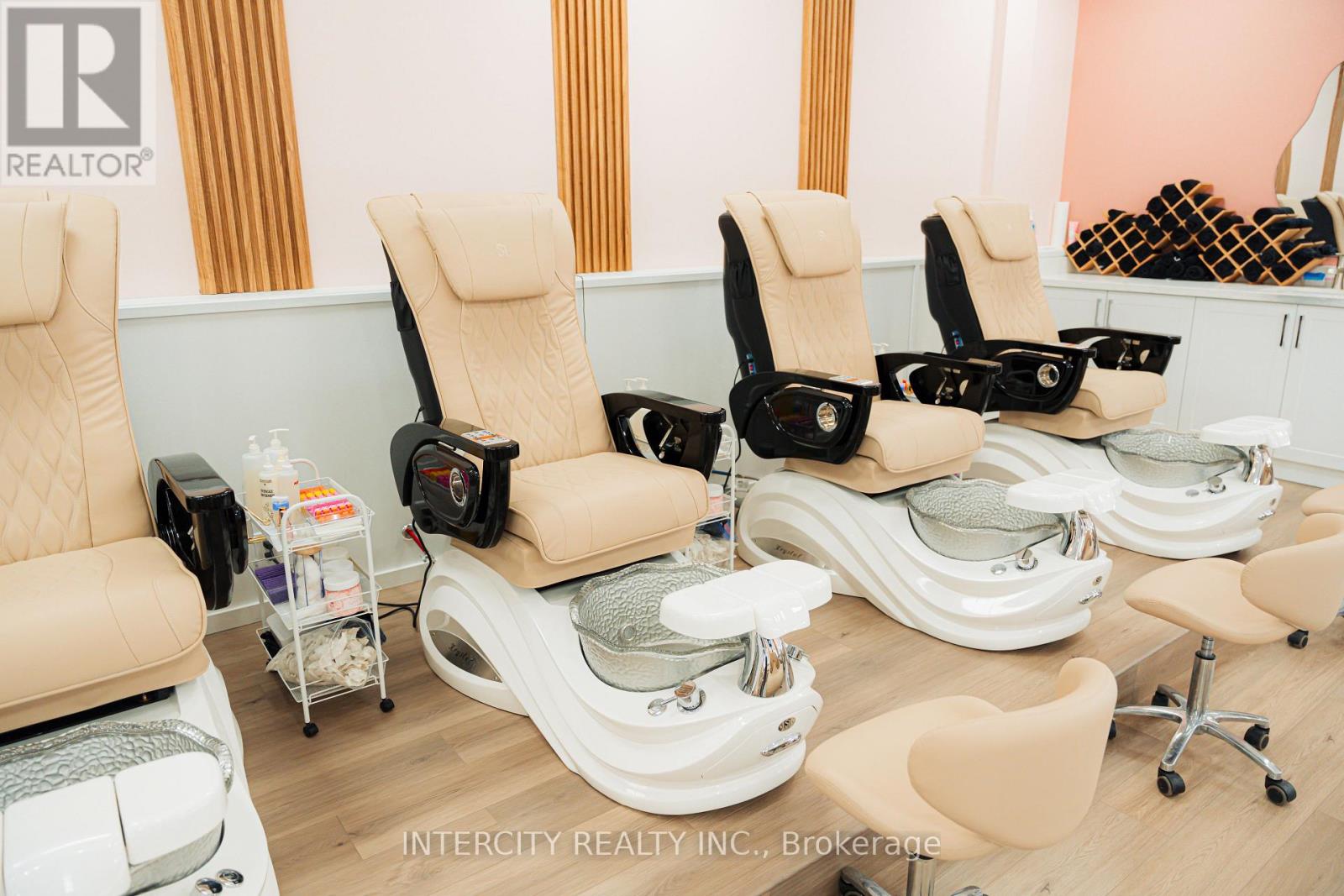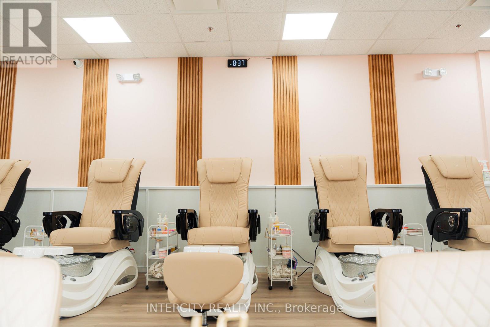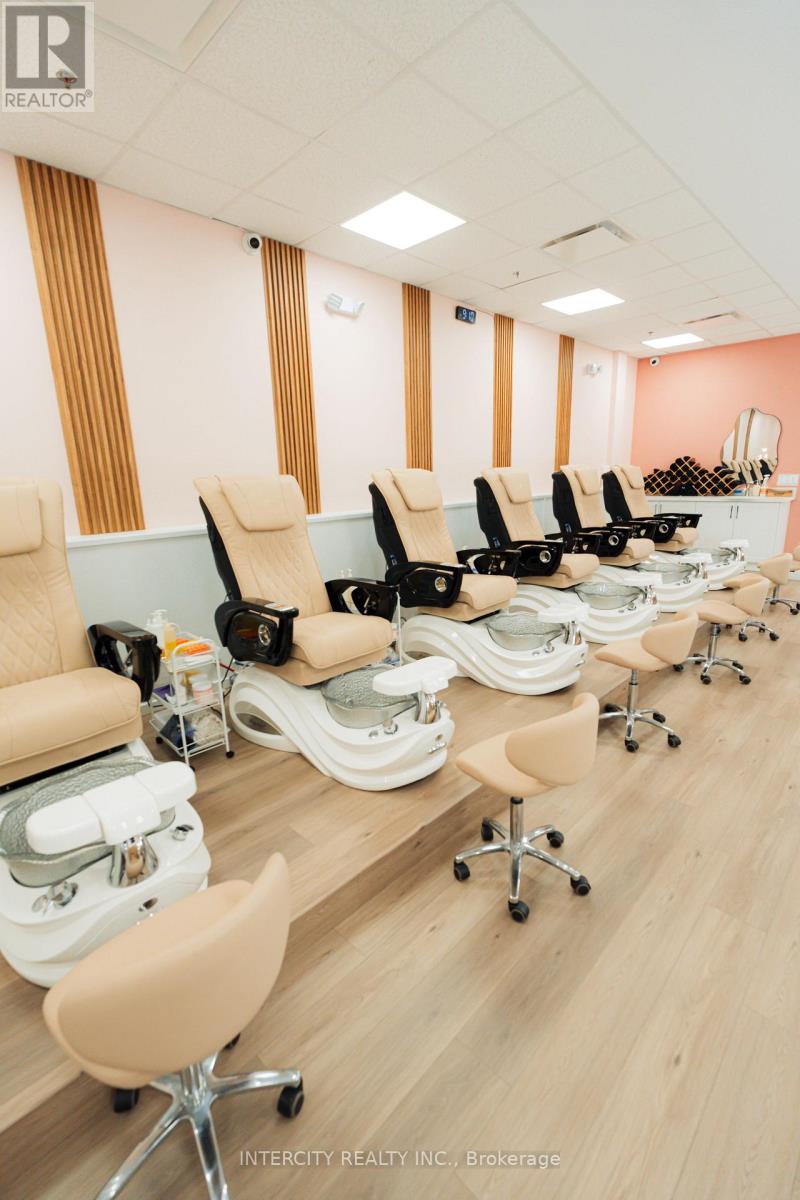 Turnkey Nail & Beauty Salon in Prime Location! Well-established, fully equipped salon featuring 8 nail stations, 6 pedicure chairs, and 1 private treatment room. Additional glass beauty cubicle currently rented at $1,000/month providing steady supplemental income. Modern interior with stylish reception area, professional equipment, kitchenette with laundry, staff storage, and washroom including AODA-compliant facility. All furniture, fixtures, and equipment included. Dual entrances with ample free parking. Located in a high-traffic area surrounded by new developments, offering strong walk-in exposure and loyal clientele. Trained staff may stay for smooth transition. (id:60351)