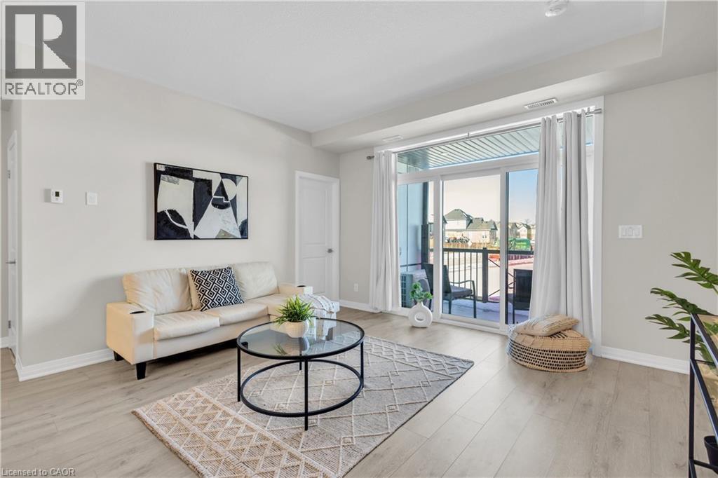 Welcome to 1F-155 Thomas Slee Drive, an exceptional and meticulously maintained stacked townhouse nestled in the heart of the highly desirable Doon Community. This modern, move-in-ready, only a few years young contemporary style home offers an outstanding opportunity for first time Home buyers or investors. Step inside and be greeted by a thoughtfully designed main level. The spacious, chef-inspired kitchen features stainless steel appliances, an abundance of cabinetry, elegant quartz countertops and a large center island that serves as the heart of the home. The bright and expansive living area, filled with natural light offers direct access to an oversized balcony. This private outdoor retreat is perfect for morning coffee, evening relaxation or simply soaking in the peaceful views. A convenient powder room completes this level. The upper level offers a well-planned layout designed for comfort and privacy. You’ll find 2 generously sized bedrooms, each with its own private balcony, creating rare and inviting personal outdoor spaces. The primary bedroom is a true retreat, complete with a walk-in closet and a stylish 3-piece ensuite bathroom. A modern main bath and a conveniently located laundry room complete the upper floor. This beautiful townhouse showcases modern finishes, excellent natural light and a smart, efficient layout throughout with very low maintenance fee. Additional highlights include one assigned parking space, along with multiple first-come, first-served parking spots, offering convenience and flexibility for parking. Located in a prime Doon location, this home is just steps away from Groh Park, Groh Public School, scenic walking trails, and offers quick access to Highway 401, along with nearby restaurants, shopping and everyday amenities. Enjoy a vibrant community setting while staying connected to everything you need. An exceptional home in an unbeatable location, don’t miss this opportunity. Book your private showing today! (id:60351)