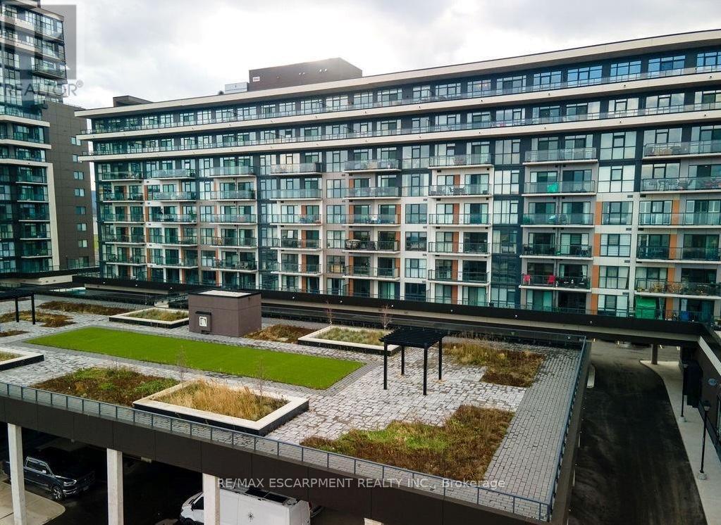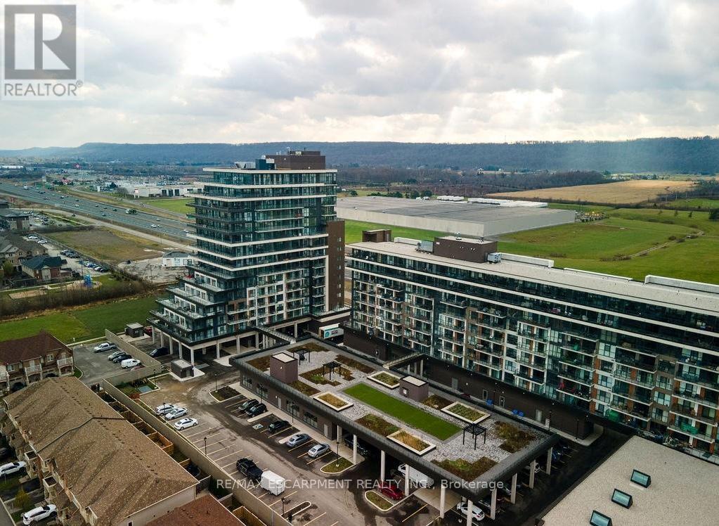 Lake views for days. Welcome to unit 810 at 560 North Service Rd - perched high above Grimsby-on-the-Lake with sweeping, unobstructed views of Lake Ontario. This 2-bedroom + den, 2-bath suite offers approximately 983 sq ft of bright, open-concept living. The modern kitchen features a quartz-topped island, ample cabinetry, and durable vinyl plank flooring throughout The desirable split-bedroom layout provides added privacy, while the versatile den is ideal for a home office, nurser, or flex space. Start your mornings with coffee on the oversized balcony, taking in stunning sunrises over the water. Additional highlights include in-quite laundry and generous storage. Steps to waterfront trails, cafes, and restaurants, with quick access to the QEW and GO Transit - making this an excellent option for commuters and lifestyle buyers alike. A turnkey waterfront community opportunity with views that truly set it apart. (id:60351)