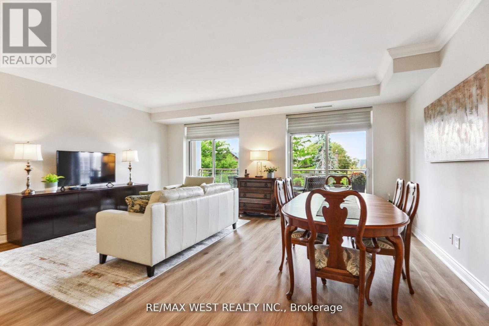 Prime Location in the Heart of Market Lane! Steps from shops, restaurants, and all amenities, this beautifully renovated condo combines the comfort of a home with the convenience of condo living. Featuring a gourmet chefs kitchen with quartz countertops, quartz backsplash, oversized island, and premium stainless steel appliances, this kitchen surpasses those found in many houses. The bright, open-concept layout boasts 9 foot ceilings with crown molding, new luxury vinyl flooring throughout, and a spacious living/dining area that flows seamlessly to a large west-facing balcony with gas BBQ hook up perfect for entertaining. The unit offers 2 generous bedrooms, 2 bathrooms, a walk-in closet with custom organizers, and in-suite laundry with laundry tub . Enjoy outstanding building amenities including a fitness centre with sauna, party room, bike storage, concierge/security, guest suite, and visitor parking. Just minutes to transit, highways, trails, Vaughan Business Centre, this residence is the perfect blend of elegance, comfort, and convenience. Don't miss this rare opportunity to own in one of Woodbridge's most sought-after locations! (id:60351)