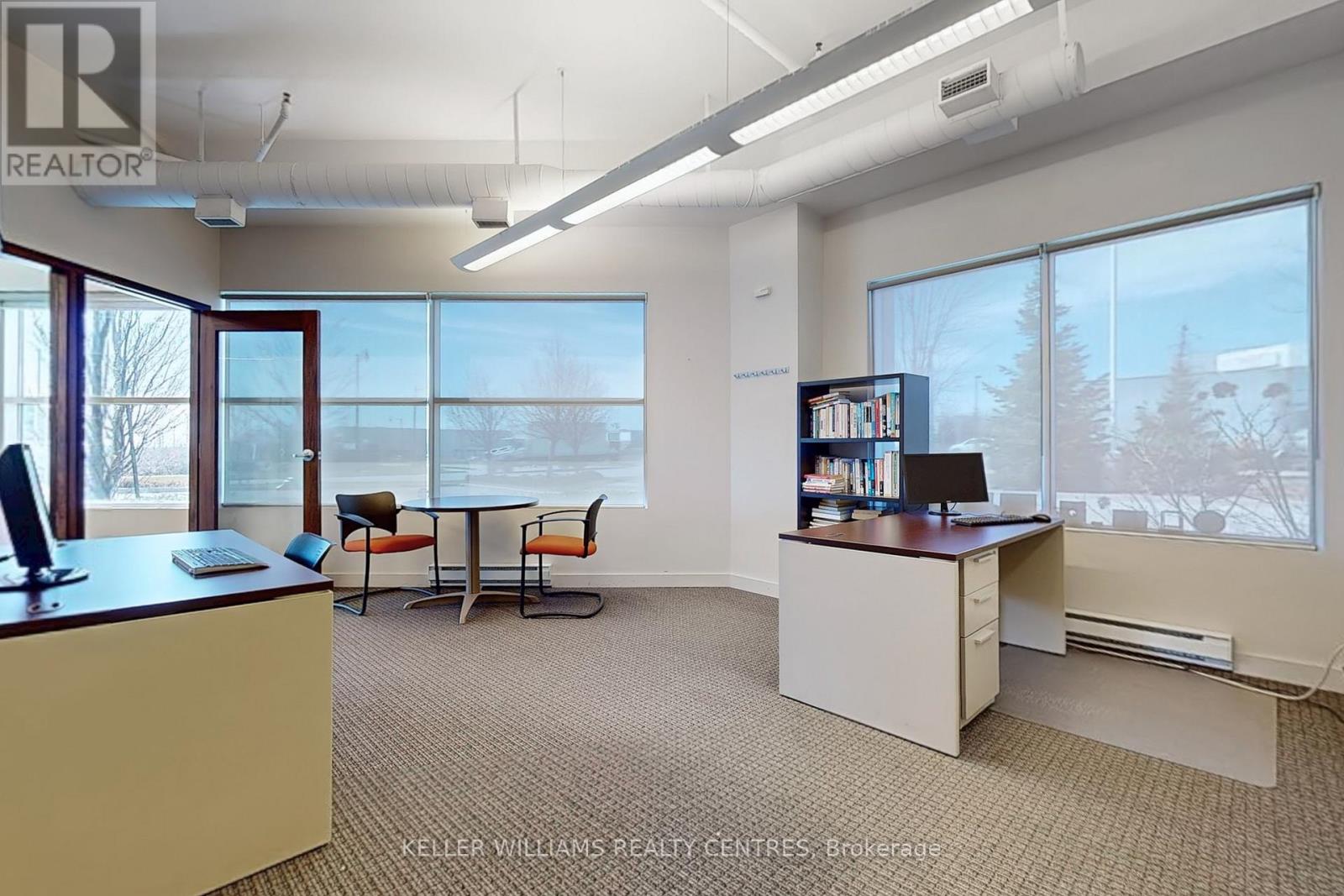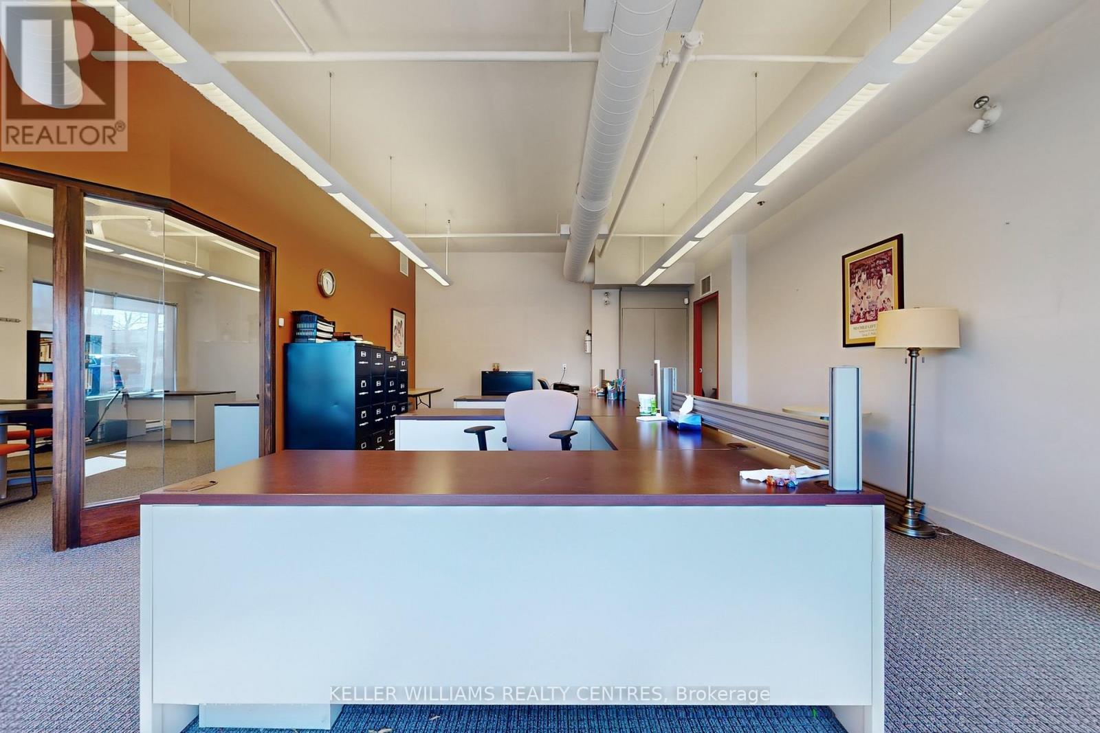 Large street facing Corner Unit! Over 2,535 sqft of gross floor Area (1,610 sqft ground level + 925 sqft 2nd level Mezzanine). No rear shipping door, space used approx. 75% Office, 25% Storage. Large Windows with lots of natural Sunlight. Office space includes two Washrooms, 1 Kitchenette, 1 Boardroom, and 3 street facing offices. Large space for storage rooms/offices/work spaces. Lots of Restaurants and Shopping right around the corner, super fast access to Highway 404. Plenty of Parking spaces available at front of the building. (id:60351)