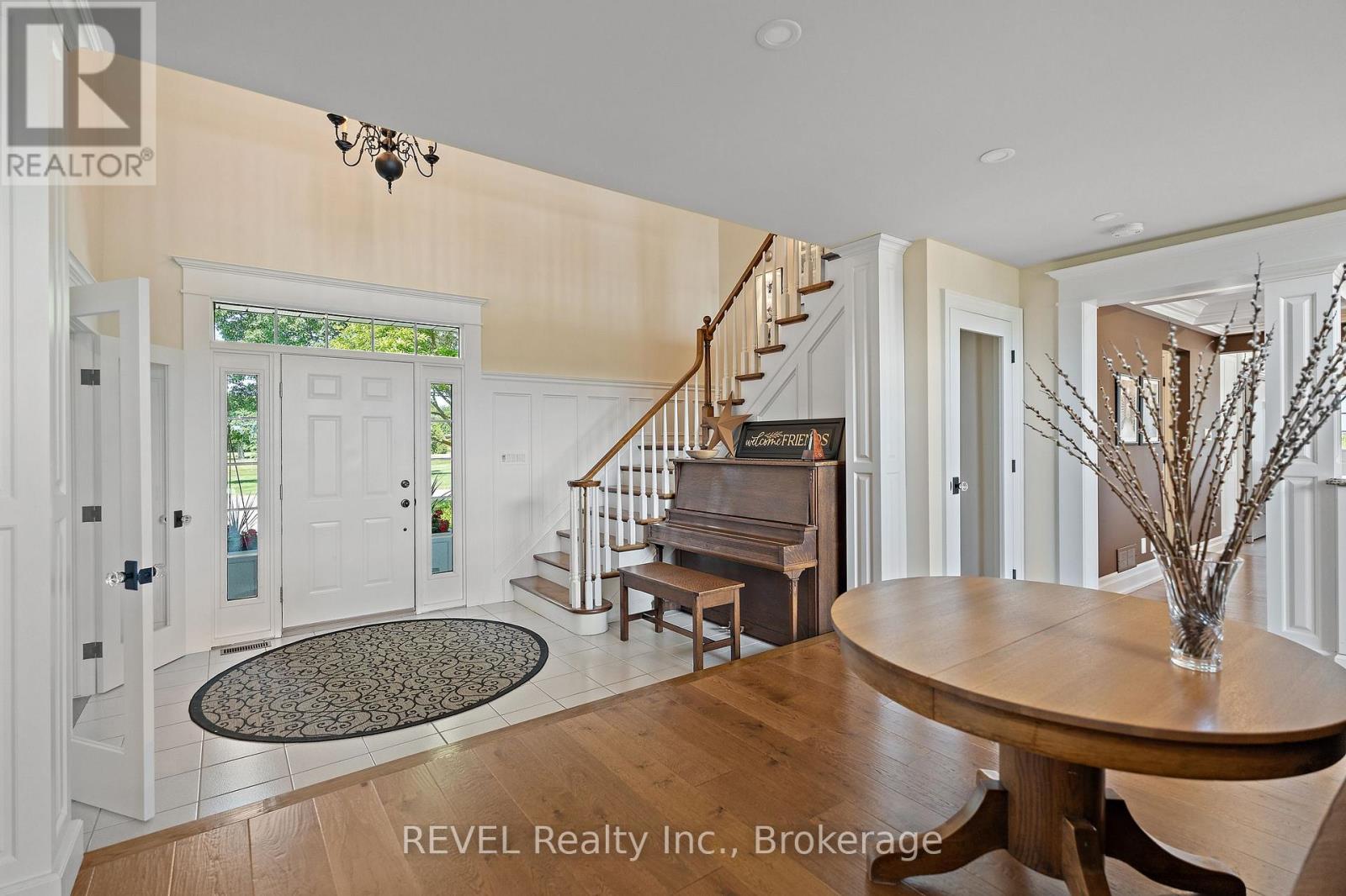 Boasting over 3,400 square feet of beautifully designed living space, this exceptional 3+2 bedroom, 3+1 bathroom estate is set on a serene 1.6-acre lot in the heart of Niagara-on-the-Lake, surrounded by picturesque vineyard views. Thoughtfully renovated in 2022 by Wendy Edwards Design Inc., the home seamlessly blends contemporary elegance with elevated functionality.The main living space impresses with soaring 16-foot ceilings in the great room, anchored by a striking floor-to-ceiling stone wood-burning fireplace. The chef's kitchen is a true showpiece, featuring double quartz islands and a 48" dual-fuel Thermador range with steam oven, six-burner gas cooktop with electric griddle, electric oven, and oversized double exhaust fan-perfectly designed for entertaining and everyday luxury.Two bedrooms offer private balconies, creating tranquil retreats with stunning views. A dedicated home office with custom built-ins and a 9-foot coffered ceiling provides an inspiring workspace.The fully finished lower level offers a complete in-law suite with its own kitchen, bathroom, laundry, gas fireplace, and additional bedrooms-ideal for extended family or guests.Outdoor living is equally impressive, highlighted by a 42" Weber natural gas BBQ equipped with rotisserie, griddle, sear station, and smoker-perfect for hosting in true Wine Country style.With Bell Fibre internet, natural gas, and city water services, this home combines modern convenience with the peaceful beauty of its surroundings. A rare opportunity to experience refined country living in one of Niagara-on-the-Lake's most sought-after settings-truly an exceptional place to call home. (id:60351)