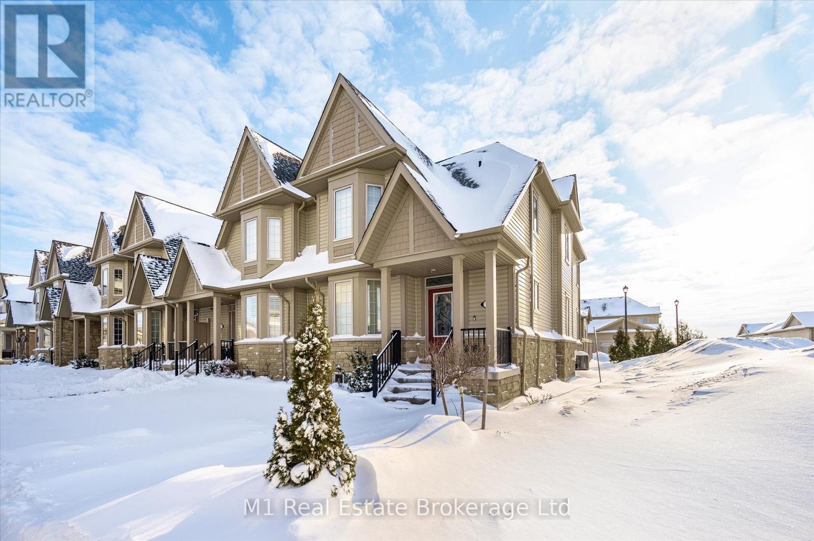 Welcome to Unit 1 at 45 Elliot Ave East in Fergus, an end-unit townhome offering added privacy and extra natural light in a quiet, pedestrian-friendly courtyard with a parkette just steps from the front door. The main floor features upgraded vinyl and tile flooring and a functional open layout connecting the kitchen, dining, and living areas. The kitchen includes granite countertops. Just off the garage, you'll find a convenient laundry area and powder room that work well as a practical mudroom space. Upstairs, the primary bedroom includes its own ensuite and a walk-in closet, with two additional well-sized bedrooms and a full bathroom. The fully fenced backyard offers extra privacy along the end side of the home and provides a great space for relaxing, entertaining, or outdoor play with a low-maintenance setup. Parking is easy with an attached garage and a private driveway accessed from the rear. Located within walking distance to schools, trails, parks, and shopping, this home offers comfortable living with the added benefit of an end-unit location in one of Fergus's most desirable communities. (id:60351)