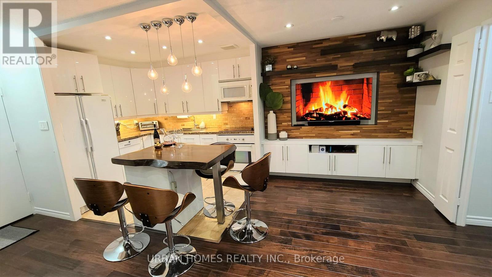 Discover this beautifully renovated, freshly painted 2-storey condo townhome in the heart of Thornhill-move-in ready and designed for modern living! All-inclusive rent covers hydro, electricity, basic cable/internet, plus one underground parking spot for added convenience. Step inside to a fully upgraded home featuring: A custom reclaimed-wood kitchen island that adds warmth and character, A built-in designer TV wall with generous storage, Engineered hardwood flooring throughout, Custom closet systems for exceptional organization. Enjoy outdoor living on your spacious balcony, complete with new tiled flooring and approval for a propane BBQ. The home also includes brand-new windows and custom blackout blinds for comfort and privacy. This is a rare opportunity to rent a truly turnkey home in a prime location (steps away from Yonge St. YRT/Viva bus routes) -perfect for anyone looking for style, convenience, and modern upgrades all in one place. (id:60351)