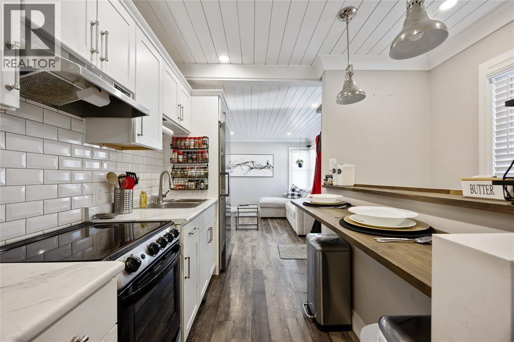 FULLY RENOVATED BUNGALOW ON A 172-FT DEEP LOT, JUST STEPS FROM A K–8 SCHOOL. UPDATED THROUGHOUT WITH VINYL PLANK FLOORING, MODERN TRIM AND DOORS, AND SHIPLAP CEILINGS WITH CROWN MOULDING. BRIGHT KITCHEN WITH BREAKFAST BAR AND ACCESS TO A COVERED SIDE PORCH. MAIN BATH FEATURES A SOAKER TUB WITH PORCELAIN TILE SURROUND, AND BOTH BEDROOMS INCLUDE CUSTOM CLOSET ORGANIZERS. NEW SUN DECK AND SLIDING DOOR OVERLOOK THE REFRESHED YARD WITH NEW FENCING, FRENCH DRAIN SYSTEM WITH SUMP PUMP, RE-GRADING AND NEW SOD, PLUS A/C RELOCATION. FINISHED LOWER LEVEL ADDS A THIRD BEDROOM, REC ROOM, OFFICE/PLAY AREA, AND UPDATED 3-PC BATH. DETACHED 12X20 GARAGE. MAJOR UPDATES INCLUDE FURNACE, A/C, SHINGLES, SIDING, EAVES, WINDOWS, INSULATION, PLUMBING, ENTRY DOORS, AND FULL ELECTRICAL REWIRE WITH NEW PANEL. HOT WATER TANK RENTAL. MOVE-IN READY WITH ALL THE BIG WORK DONE. (id:60351)