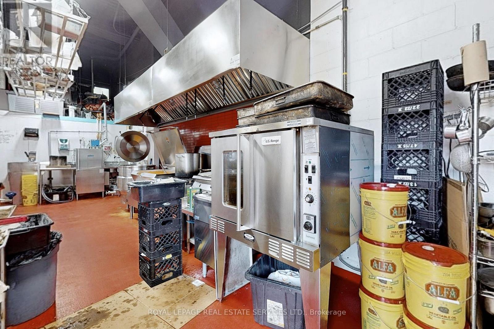 Great opportunity to position your culinary operation for long-term success with this exceptional 4,175 square foot catering and commissary facility located in the heart of Woodbridge within the highly sought-after Pine Valley Business Park. Strategically situated at Highway 7 and Weston Road, the property offers outstanding accessibility with immediate connections to Highways 407 and 400, providing seamless access throughout the GTA and beyond. Designed to accommodate high-volume production, the facility is fully equipped and thoughtfully laid out to support a wide range of food service operations. Features include a 14-foot commercial exhaust hood, two large walk-in refrigerators, one oversized walk-in freezer, roll-up garage doors for efficient shipping and receiving, high ceilings, ample shelving, and designated on-site parking. The premises also include second-floor office space and a private boardroom, offering a functional balance between production and administrative operations. An extensive list of chattels and equipment is available upon request, presenting a turnkey opportunity for established caterers, commissary operators, or expanding food brands. The Landlord is prepared to offer a brand new 5 + 5 year lease term to qualified tenants, providing long-term stability in one of Woodbridge's most strategic industrial-commercial corridors. Additional equipment can be purchased at extra cost (food trucks, gelato cart, etc.) Please do not go direct or speak to staff. (id:60351)