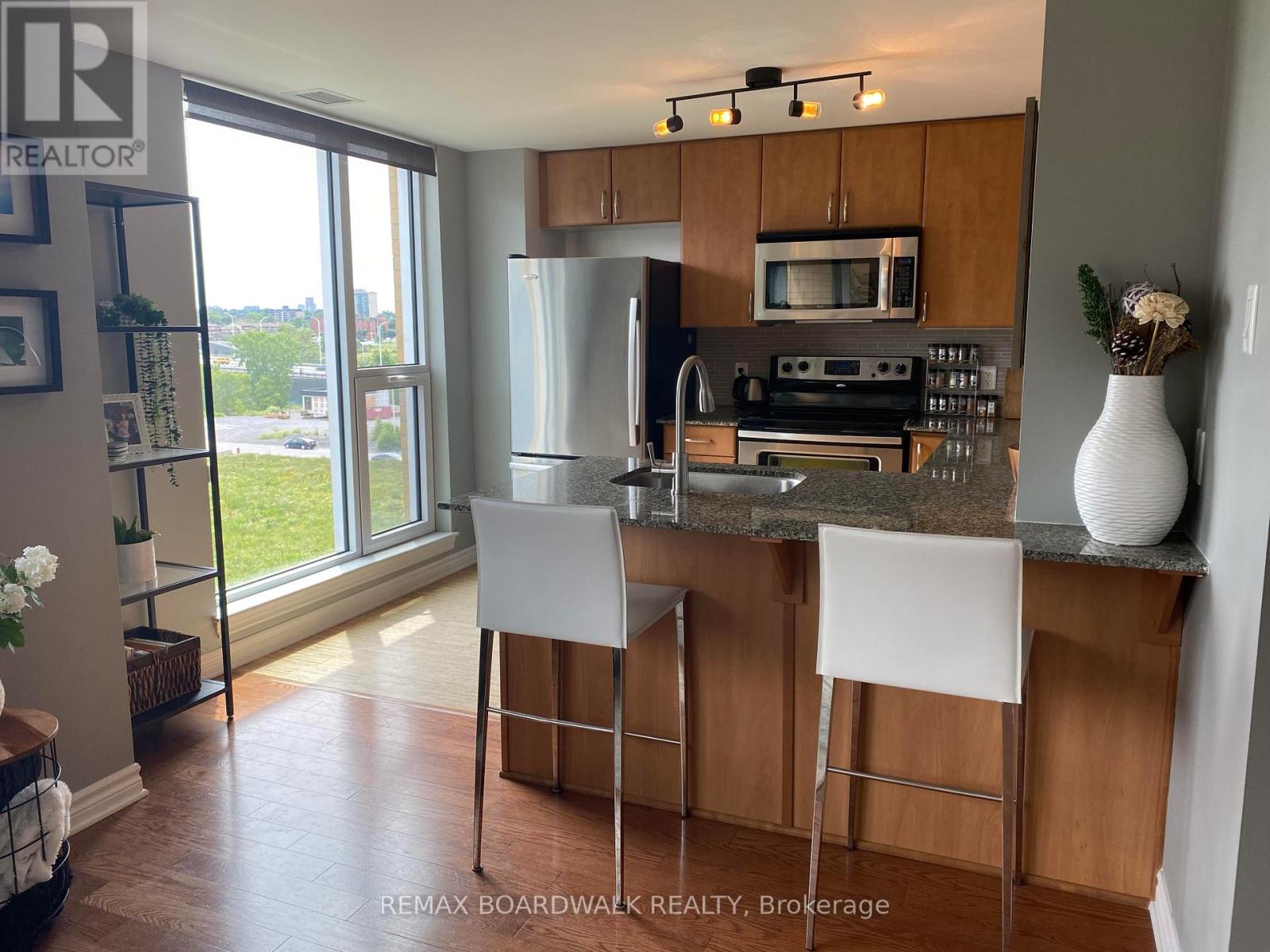 Available fully, partially or not furnished at all. This open concept spacious 1 bedroom/1bath condo in LeBreton Flats, on the top floor so no neighbours above!! This unit has floor to ceiling windows with custom blinds, quartz countertops throughout and in-suite laundry. Hardwood flooring in living/dining & bedroom areas & cork flooring in the kitchen. Unit includes a parking spot and storage unit as well!! An unbeatable location with great access to Downtown, Transit/O-Train, Ottawa River bike/walking paths and greenspace. Walking distance to a huge selection of restaurants and specialty shops in Little Italy and China Town. A quick ride on the O-train to Farm Boy or get your steps in and walk to the Parkdale Market. Great amenities include a large indoor parking spot, salt water pool, gym, roof top garden w/BBQ and breathtaking views. Book your showing before it's gone! A full list of furnishings can be provided upon request. (id:60351)