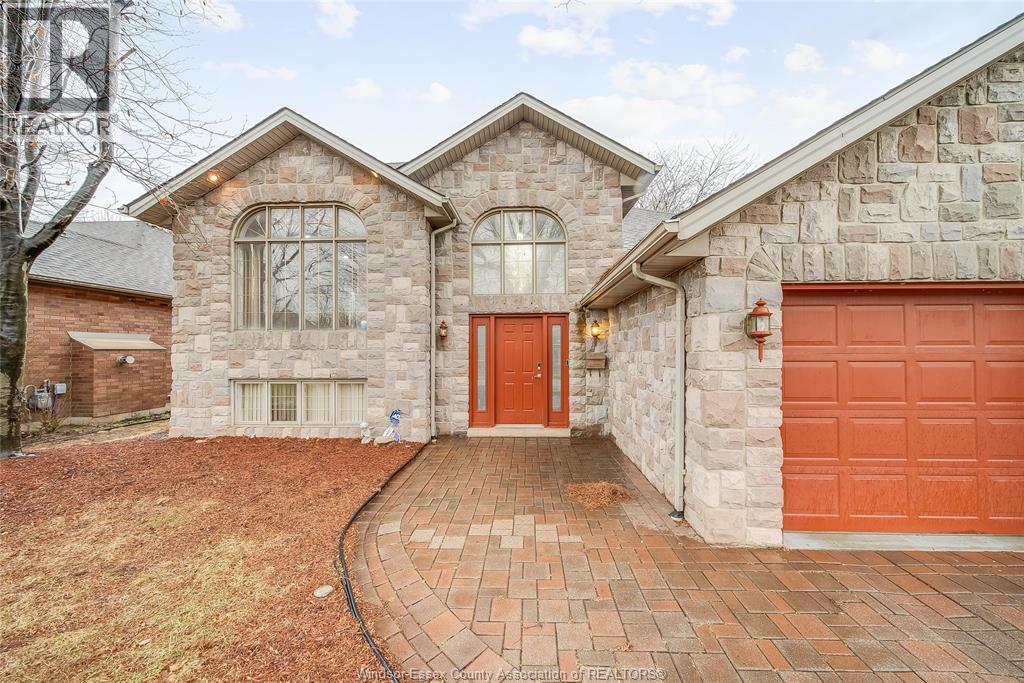 Prime South Windsor raised ranch approx. 1,900 sq ft featuring a beautiful stone front and full brick exterior. Bright open-concept living and dining areas with a spacious eat-in kitchen and patio doors leading to a large deck with gazebo. Offers 3+1 bedrooms and 3 full baths, including a 3-pc ensuite. Hardwood and ceramic flooring throughout (except games room). Cozy family room with gas fireplace and wood mantle. Large games room ideal for entertaining with grade entry to a landscaped yard featuring patio, shed, and storage under deck. Close to schools, shopping, and St. Clair College. (id:60351)