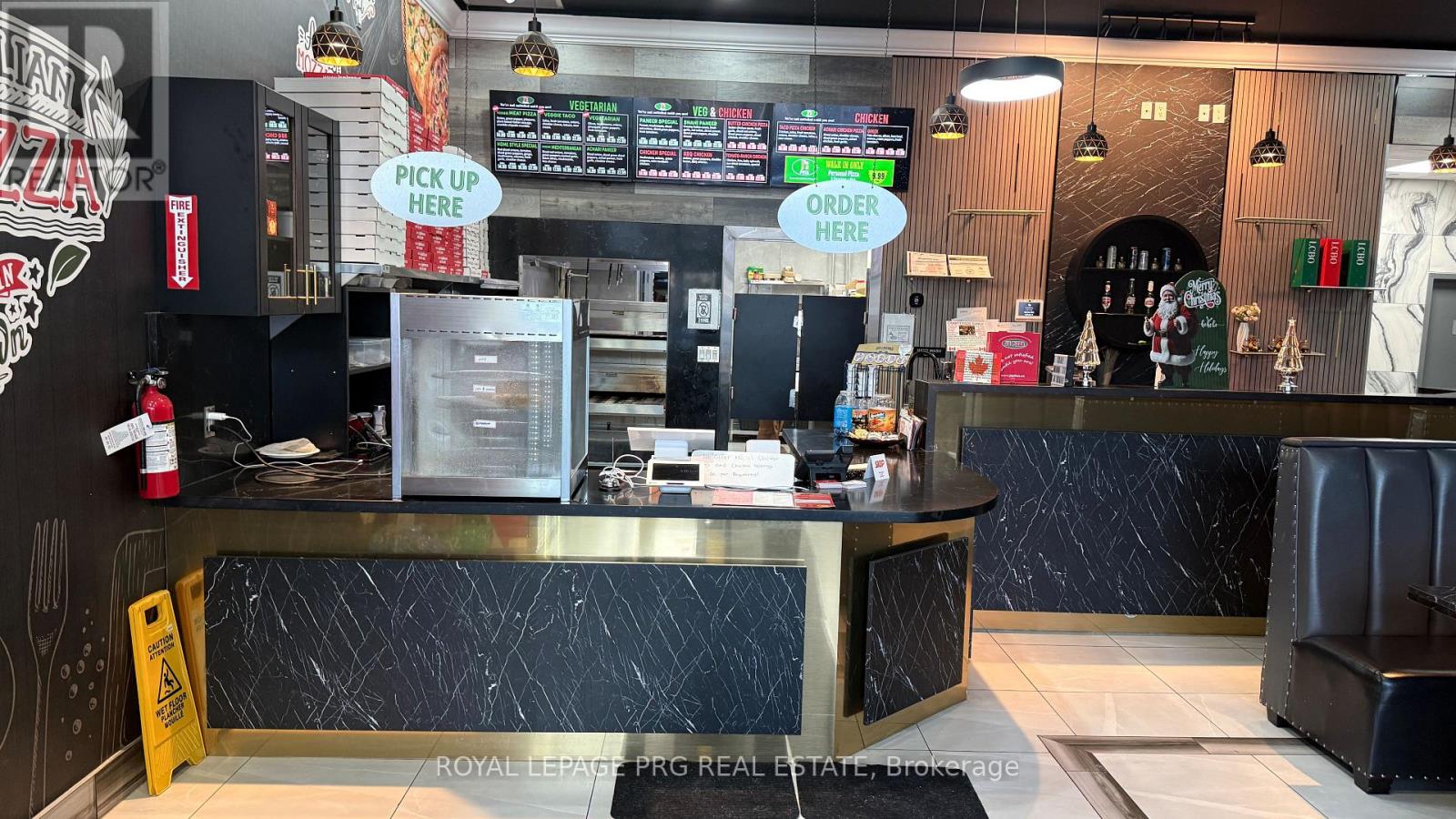 Prime Commercial Opportunity - Pizza Restaurant with Real Estate in Castlemore Town Centre. *** Rare Opportunity to acquire both business and property in one of Brampton's most prestigious retail nodes - Castlemore Town Centre. **Approximately 1,900 sq. ft. corner unit offering exceptional street presence and maximum exposure. **Unbeatable visibility at the highly trafficked intersection of Humberwest Parkway & Goreway Drive. **Turnkey pizza restaurant, fully furnished and tastefully designed with contemporary, high-end finishes. **Fully equipped commercial kitchen, including a 14-foot exhaust hood, ideal for a wide range of food concepts. **Licensed for dine-in and alcohol service (LLBO), with seating capacity for 30+ patrons. **Two on-site washrooms, ensuring compliance and customer convenience. **Flexible zoning allows for multiple alternative uses, including but not limited to: Indian dine-in restaurant, Café or bakery, Shisha lounge (subject to approvals), Clothing or retail boutique, Mortgage office or professional office use. **Unit can be sold fully operational or delivered vacant, allowing buyers to tailor the space to their specific business vision. **Ample on-site customer parking, enhancing accessibility and foot traffic. **Surrounded by dense residential communities and strong commercial growth, providing a built-in and continuously expanding customer base. **Ideal for owner-operators, investors, or entrepreneurs seeking long-term appreciation and stable real estate ownership. **Modern layout with premium finishes, minimizing immediate capital expenditure. A standout opportunity to own, operate, or reposition a premium commercial unit in one of Brampton's most vibrant and desirable retail corridors. (id:60351)